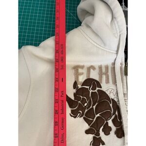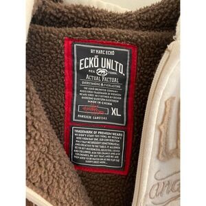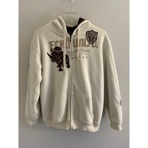 Vintage Ecko Unltd Mens XL Sherpa Lined Zip Up Hoodie Cream Rhino Graphic Y2K