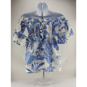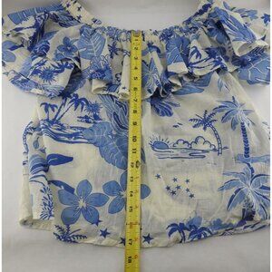 Artelier Nicole Miller Blue White Tropical Off Shoulder Ruffle Top Sz S Boho