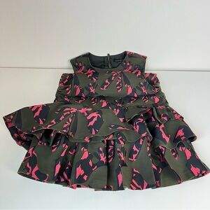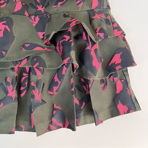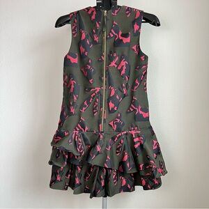 Beautiful Banana Republic mini dress with bold pink floral print and dramatic ruffle hem.