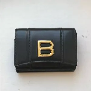 Balenciaga Hourglass Mini Black Calfskin Wallet with Gold Logo