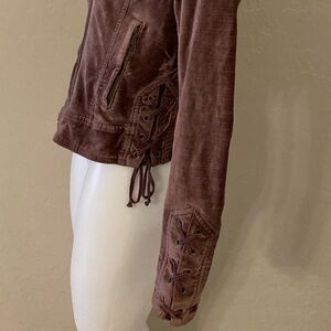 Free People Purple Crushed Velvet Moto Jacket Size Small