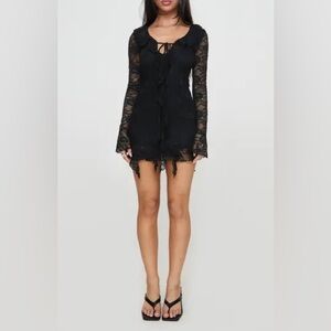 Princess Polly plunging neck line black lace mini dress.