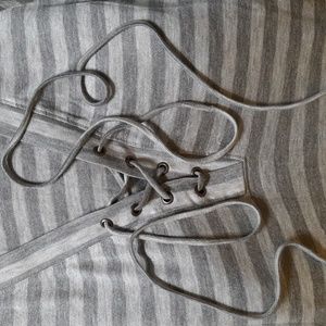 L’AGENCE Lace-Up Henley Striped Top Tencel Grey Soft Luxury Knit Sz S