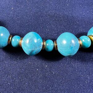 This stunning turquoise necklace elevates any outfit, featuring unique graduated beads and gold accents that add elegance and charm to your look.