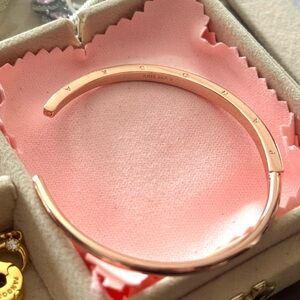 Elegant Pandora bangle bracelet in a stunning rose gold color. Perfect for adding a touch of sophistication to any outfit. Adjustable in size, can be opened bigger or squeezed smaller