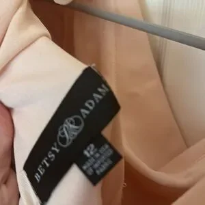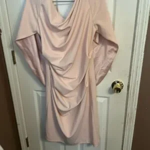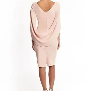 Betsey &Adam Drapedback ruched Sheath Dress NWOT 12. Color blush pink half sleeve boat neck fully lined hidden center back zipper draped back polyester /spandex spot clean knee length