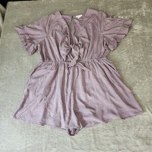 Festi Plus Size 2X Purple Short Sleeve Tie Front Romper w/ Embroidery