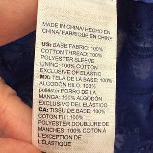 Chico's Cobalt Blue Floral Appliqué Puff-Sleeve Button Up Scoop Neck Blouse -XL