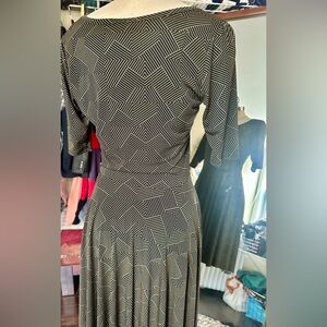 LuLaRoe Black & Gold Geometric Fit-and-Flare Midi Dress