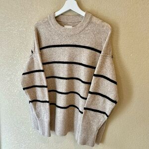 Aerie Striped Crewneck Sweater - Neutral Oatmeal with Black Stripes Oversized L