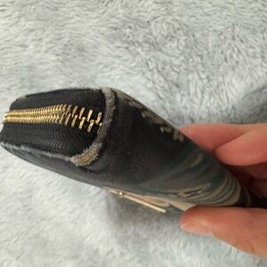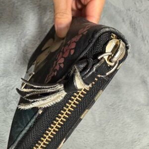 kate spade Black Floral Zip Wallet with Yellow and Green Accents