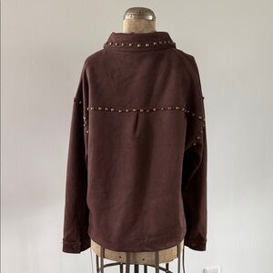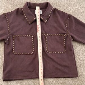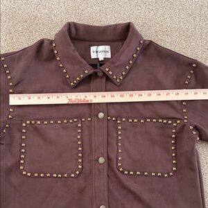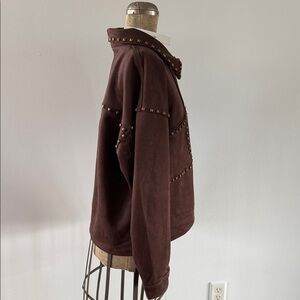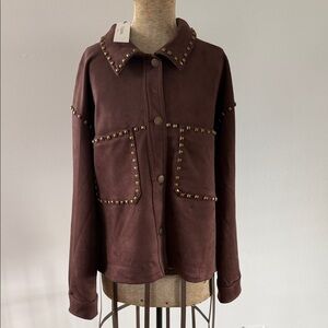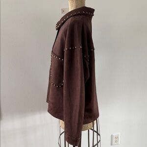 VIGOSS- Brown Faux Suede Studded Trucker Jacket Gold Stud Western Rock Style