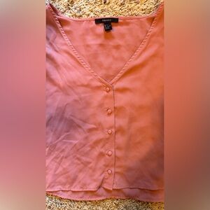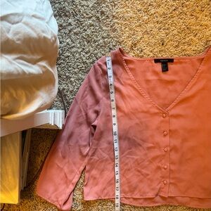 Vintage 2010s Forever 21 lightweight button-front blouse in a warm blush color. Flowy silhouette with a relaxed V-neck and long sleeves. Semi sheer. Size L.