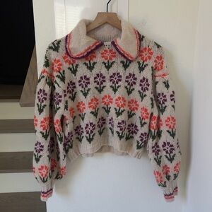 NWT Free People Frills Softspun Sweater in Oatmeal Tulip Combo