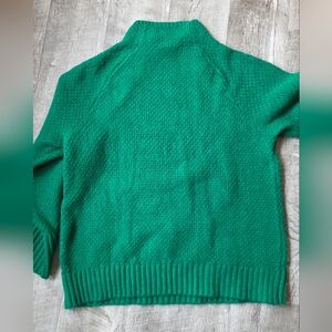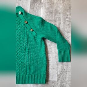 Elegant emerald sweater with button accents. Features a textured knit design. Ideal for a chic, warm look.