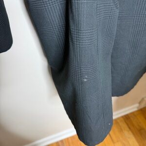 vintage larini italy waterproof cravinette overcoat in Dark Grey and Black plaid with zip-out carbonnet liner. made in italy and dating to the 1990s, this is a high-quality tailored rain coat with classic european styling. features button front closure, structured collar, front flap pockets, and a fully lined interior with removable zip-out liner for versatile wear in multiple seasons. timeless piece that works beautifully styled for both men and women.