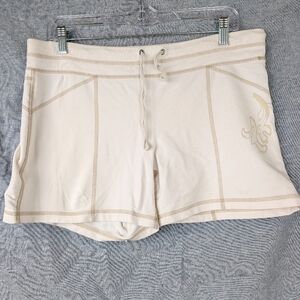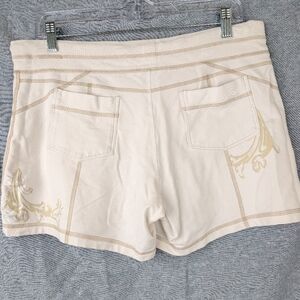 Athleta cream French terry shorts w/contrast stitching floral detail