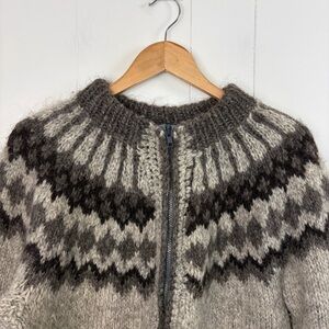 Vintage Wool Fair Isle Sweater Nordic Oversized Cardigan Boho Cabin Winter Large