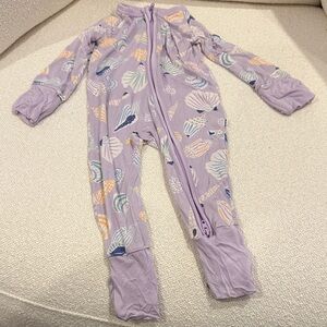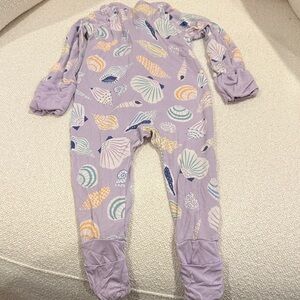 Charming purple footie with seashell design. Soft and cozy for your child. 0-3 months. Washed and dried on delicate. Great used condition.