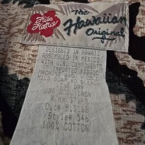 Stylish Hilo Hattie shirt. Features a Hawaiian design. Perfect for casual wear. 100% cotton