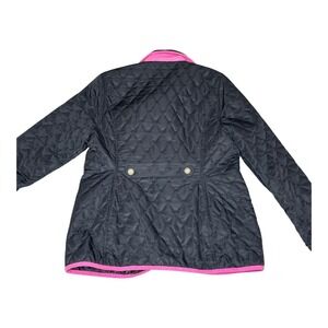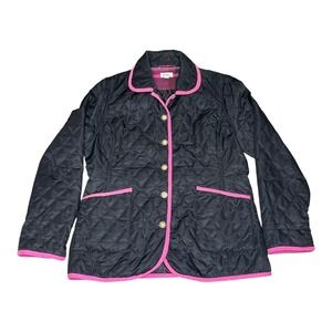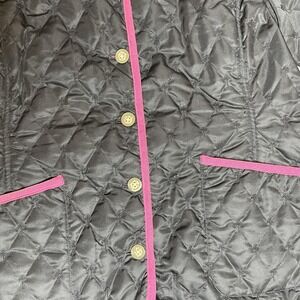Lilly Pulitzer Jacket Womens Large Black Quilted Pink Trim Button Front Preppy