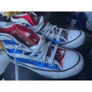 RARE Converse Chuck Taylor All Star Sequin America Flag Hightop Sneakers 549638C