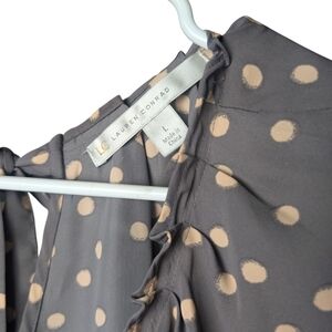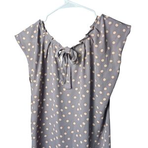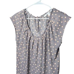 Lc Lauren Conrad Polka Dot Cap Sleeve Women's Large Blouse Gray Cream Tie Back