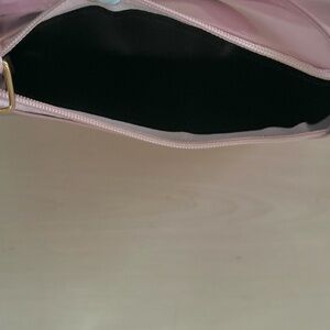 1 pearly pink shoulder purse, unlined inside, has wrinkles on bottom/side