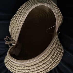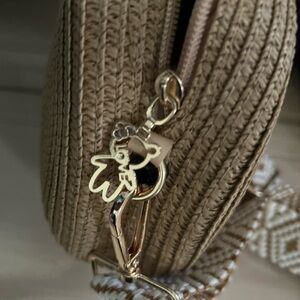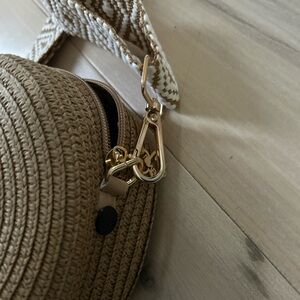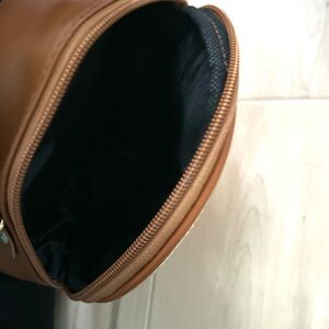 1 Tan purse, crossbody with adjustable strap, unlined inside