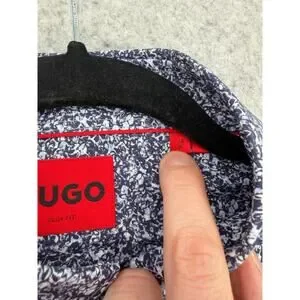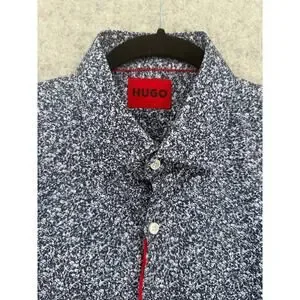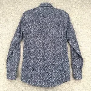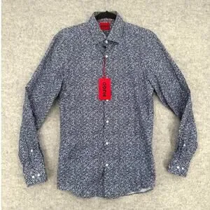 NWT Hugo Boss Kenno Dark Blue Cotton Floral Slim Fit Dress Shirt Size US 15