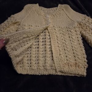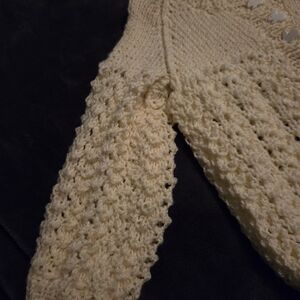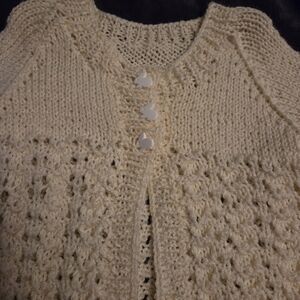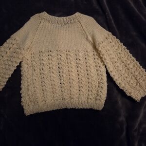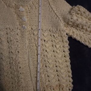 Hand made cozy yellow sweater with bunny buttons. Measurements shown in pictures. Colour is a brighter yellow than what's captured.