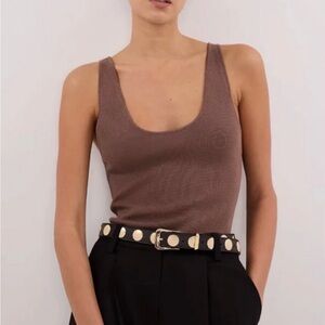 DISSH Ribbed Scoop Tank Top in Mocha Brown