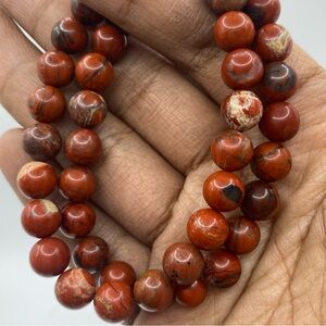 Gorgeous Red Jasper gemstone bracelet! These Red Jasper beads have a rich brick red color to them with awesome cream colored banding and quartz inclusions! This is a beautiful piece of wearable Red Jasper.