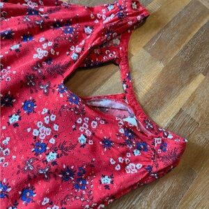 Old Navy Red Floral Tank Dress with Blue Accents