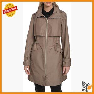 Brand new, never worn, and in flawless condition — this classic zip-up trench coat is a stylish and practical choice for spring and summer rainwear. The fit is classic and flattering, featuring a stow away hood and adjustable details for a customizable, comfortable wear.