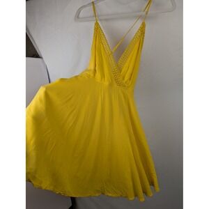 Keywords: Forever 21, yellow top, mini top, summer top, crisscross back, crochet trim, V neck, casual top, beach shirt, bohemian, feminine, vacation, resort wear