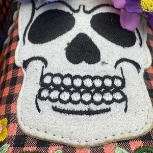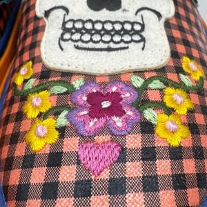 Keywords: Day of the Dead, Sugar Skull, Maximalist, Gothic, Eclectic, Kitsch, Halloween, Platform Sneakers, Floral Embroidery, Gingham, Harajuku, Alternative Fashion, Statement Shoes, Festival Wear, Kidcore