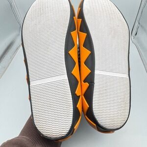 Irregular Choice Skulduggery slip-on sneakers showcase a vibrant mix of eclectic details, including a bold orange and black gingham textile upper adorned with intricate floral embroidery and 3D fabric flowers. A prominent skull appliqué sits at the center of each shoe, complemented by a unique jagged orange platform sole that adds a graphic, edgy touch. The interior is finished with a cozy plaid lining and a shimmering metallic footbed, making these a standout choice for those who appreciate maximalist design.