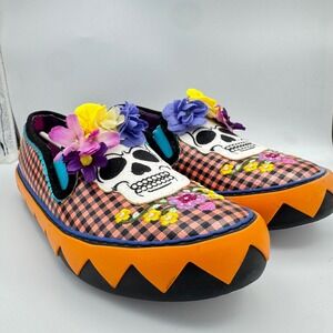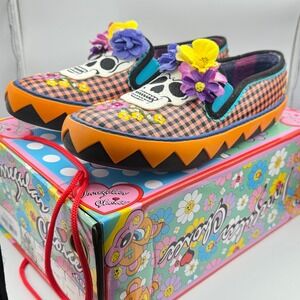 Irregular Choice Skulduggery Loafers Gingham Skull Floral Platform Sneakers 9.5