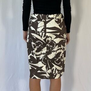 New York & Company Pencil Skirt Size 6 Cream Brown Floral