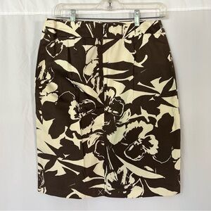 New York & Company Pencil Skirt Size 6 Cream Brown Floral Excellent Condition