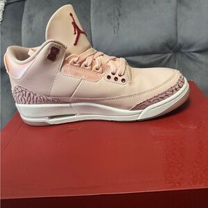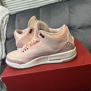 Jordan Retro 3 2025 Valentine Women’s Pink Leather Sneakers with Red Jumpman