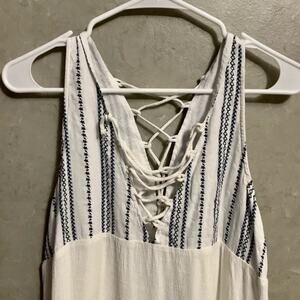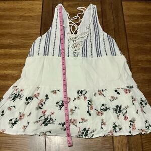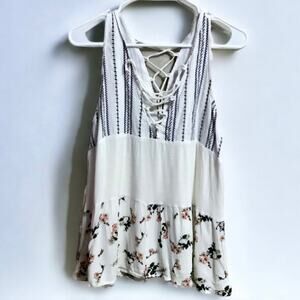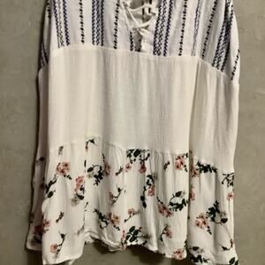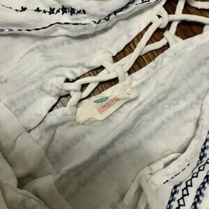 HUMMINGBIRD White Black Floral Boho Tie Blouse Size Small