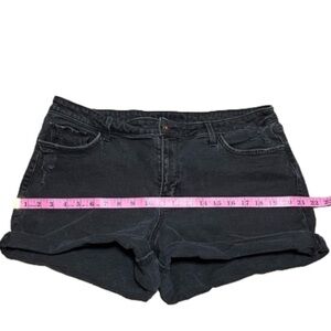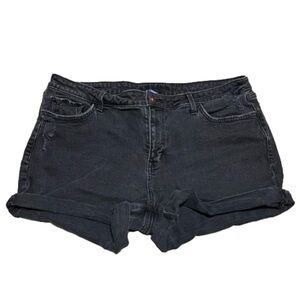 Pre-loved, Arizona Black Distressed Jean Shorts Cotton Spandex Rolled Hem Junior Size 17