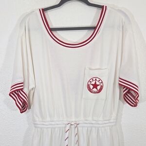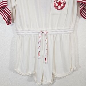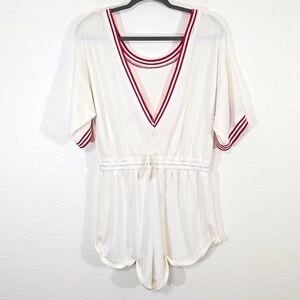 *NWT* Anthropologie Ivory/Red Deep V-Back Waffle Knit Romper Nautical Trendy, size Small. Drawstring waist. Soft material. Brand new with tag.