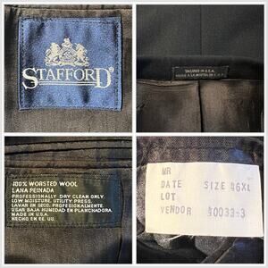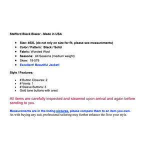Stafford 46XL Solid Black Gold Tone Buttons Blazer Sport Coat Worsted Wool