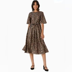 NWT gorgeous graphic leopard midi dress, with metallic rose gold accents. Can be styled with stilettos or sneakers. Will sure to turn heads wherever you go.