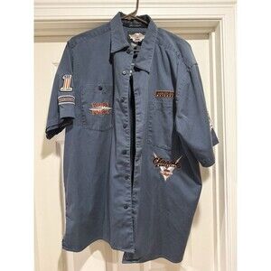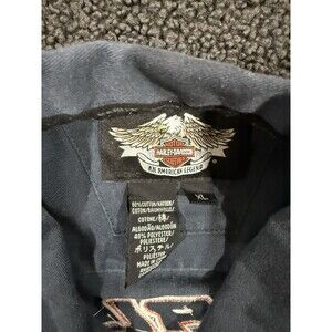 Harley-Davidson Shirt Mens XL Blue Gray Button Up Short Sleeve Work Embroidered