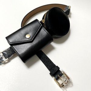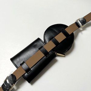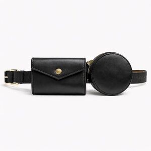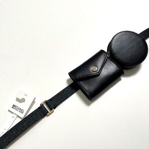 🖤 Stylish and versatile Michael Kors belt bag featuring a sleek black leather double-pouch design. This compact utility belt includes a rectangular envelope pouch and a round zip coin pouch, offering convenient storage for small essentials while maintaining a modern designer look.