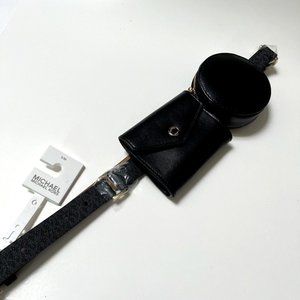 Michael Kors Double Pouch Belt Bag Black Leather MK Logo Waist Fanny Pack NWT